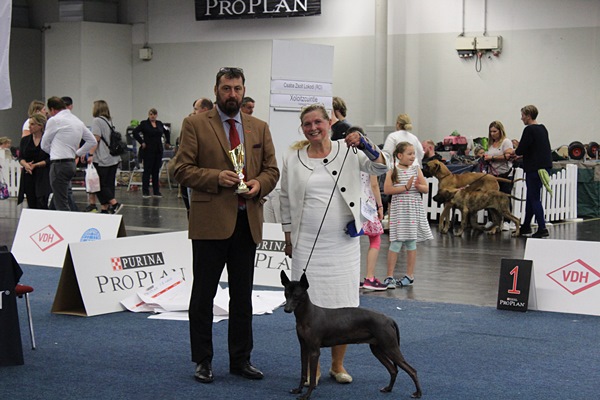 Vielen Dank an den Richter, an Estelle fürs Handling und natürlichan alle Züchter, die mir ihre Hunde anvertraut haben. Der Tag hat mal wieder gezeigt, dass ich auf dem richtigen Weg bin mit meinen Zuchtzielen und dass ich mit die besten Hunde der Rasse Xoloitzcuintle in Deutschland habe.