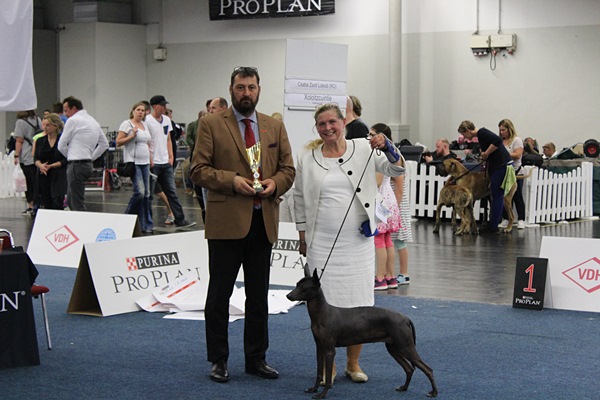 Vielen Dank an den Richter, an Estelle fürs Handling und natürlichan alle Züchter, die mir ihre Hunde anvertraut haben. Der Tag hat mal wieder gezeigt, dass ich auf dem richtigen Weg bin mit meinen Zuchtzielen und dass ich mit die besten Hunde der Rasse Xoloitzcuintle in Deutschland habe.