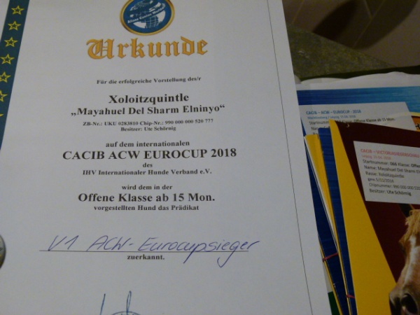 5x Europasieger und in allen 3 Größenordnungen der Xolos, davon den BOB-Sieger gestellt, ich bin so happy und von meinen Hundis begeistert.