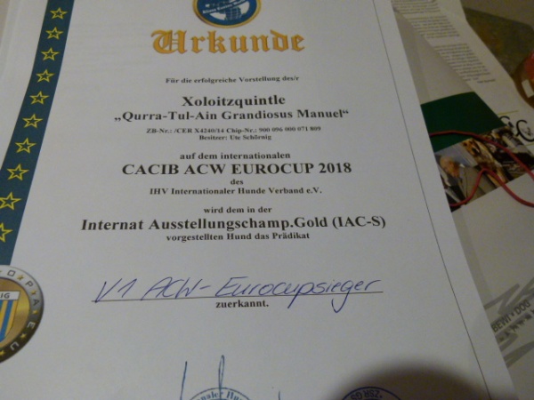 5x Europasieger und in allen 3 Größenordnungen der Xolos, davon den BOB-Sieger gestellt, ich bin so happy und von meinen Hundis begeistert.