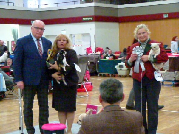 Ich durfte den Chihuahua von Olli ausstellen und habe auch Michaela getroffen, die einen wunderschönen Chi-Kh-Rüden für Weber handeln durfte.