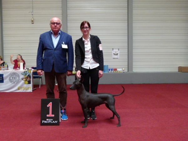 Vielen Dank an den Richter, an Estelle fürs Handling und natürlichan alle Züchter, die mir ihre Hunde anvertraut haben. Der Tag hat mal wieder gezeigt, dass ich auf dem richtigen Weg bin mit meinen Zuchtzielen und dass ich mit die besten Hunde der Rasse Xoloitzcuintle in Deutschland habe.