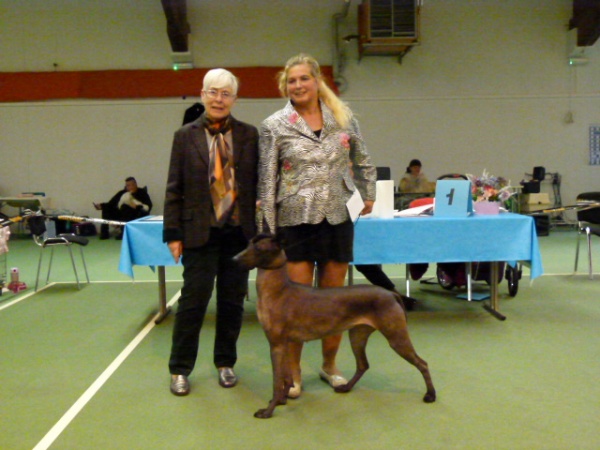 Vielen Dank an den Richter, an Estelle fürs Handling und natürlichan alle Züchter, die mir ihre Hunde anvertraut haben. Der Tag hat mal wieder gezeigt, dass ich auf dem richtigen Weg bin mit meinen Zuchtzielen und dass ich mit die besten Hunde der Rasse Xoloitzcuintle in Deutschland habe.