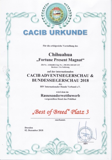 Fortune Present Magnat - Intern. Ausstellgs-Ch-Gold(IAC-S), v1 BUndessieger, v1 Adventssieger