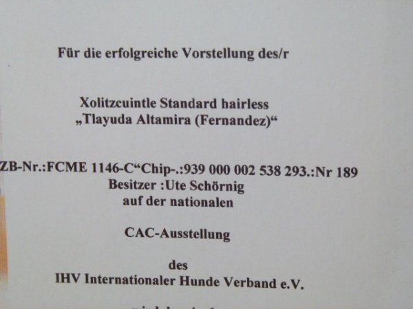 Danke an den Richter Silvio Wiegand, der unsere Hunde alle toll fand und danke an Klaus für seine Hilfe und die tollen Fotos und Naaheda fürs aufpassen und danke an alle Züchter, die uns ihre Hunde anvertraut haben.