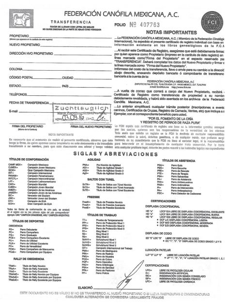 ![]() | Rasse: Xoloitzcuintle Miniature(33 cm) Titel und Dokumente: |