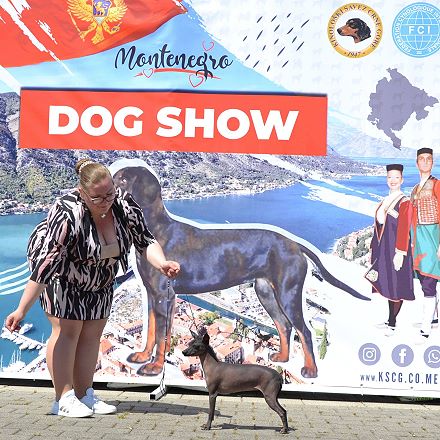 Sie ist die erste und einzige behaarte zur Zucht zugelassene behaarte Xolohündin in Deutschland und der einzige behaarte Dt.Jugend-Champion