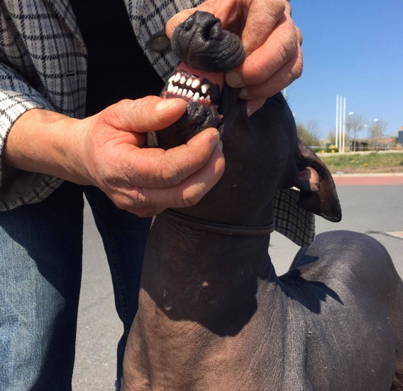 Sie ist die erste und einzige behaarte zur Zucht zugelassene behaarte Xolohündin in Deutschland und der einzige behaarte Dt.Jugend-Champion