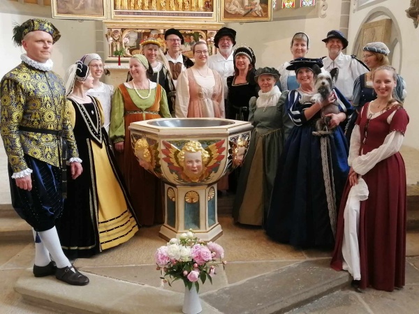 Eine musikalische Zeitreise in die Renaissance mit der Erfurter Tanzgilde und den Erfurter Camerata am 7.6.25 in Weißensee anläßlich des 500jährigen Bauernkrieges. Unterstützt wurde diese Veranstaltung von der Sparkassen-Stiftung Erfurt und mit dabei als Maskottchen Chinese Crested Schlumpi von Idefix im Besitz von Torsten Sellenrick.