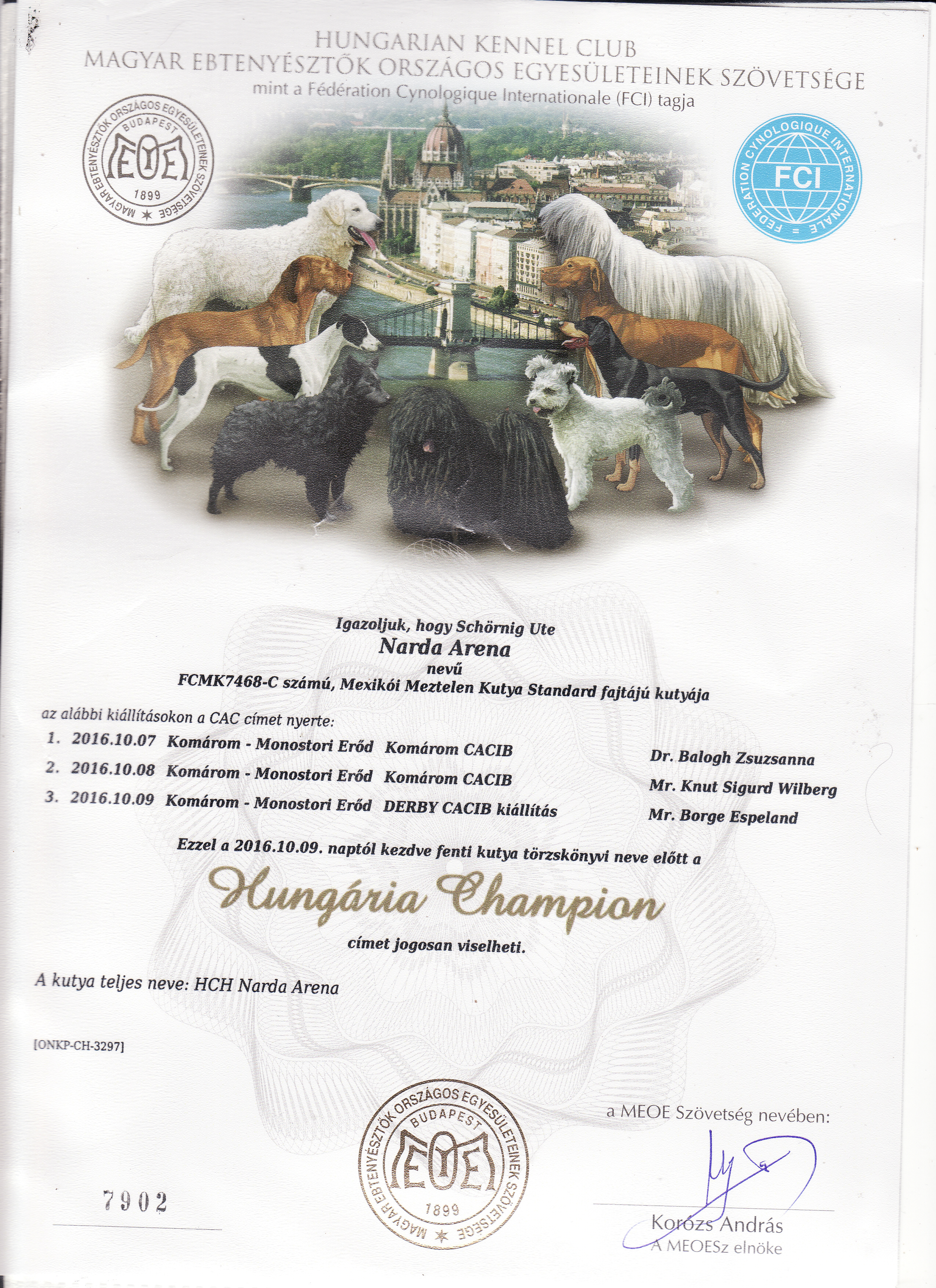 | Rasse: Xolo Standard Züchter: Alexandra Minoewa/Russland WT: 29.06.2013 ZTB ohne Auflagen Besitzer: Weber Jugendeuropasiegerin Jugendchampion VDH / CER Europajugendsiegerin 2014 Jugendclubsiegerin CER 2014 Jugenchampion Luxemburg Luxemburg Champion |
